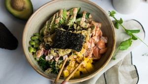 Pokébowl met wakame, mango, avocado en zalm € 4.00 p.p.