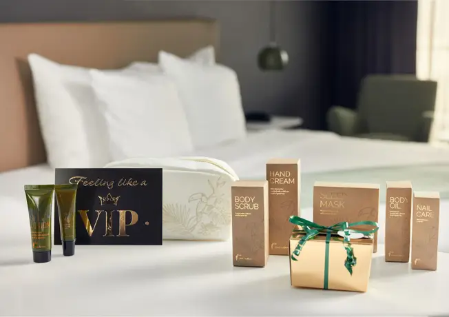 An den Feiertagen stellen wir spezielle Geschenkpakete zusammen, zum Beispiel mit Duschgel, Handseife oder Shampoo aus der luxuriösen Van der Valk-Pflegelinie. Ideal, um jemanden zu überraschen – oder sich selbst eine Freude zu machen.
