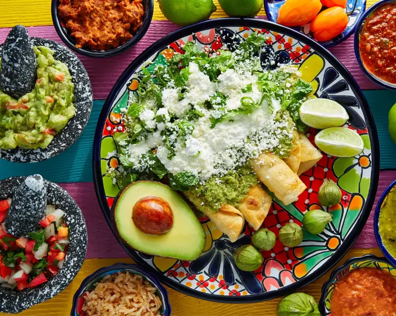 Beginnen Sie mit frischen Tex-Mex Vorspeisen: Maiscremesuppe, schwarze Bohnensuppe, Guacamole, Salsas, Wraps und Bohnensalat.