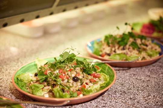 - Frisch aufgeschnittenes Carpaccio und verschiedene gemischte Salate