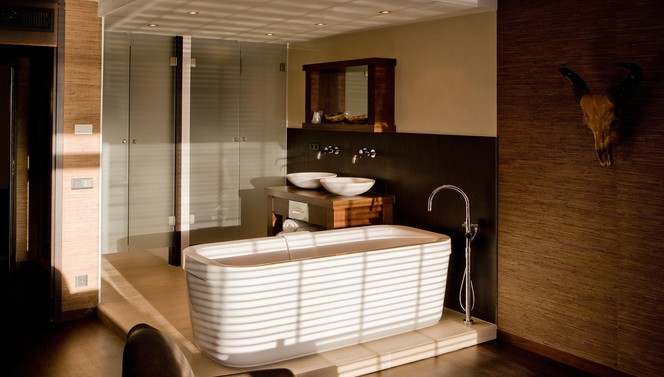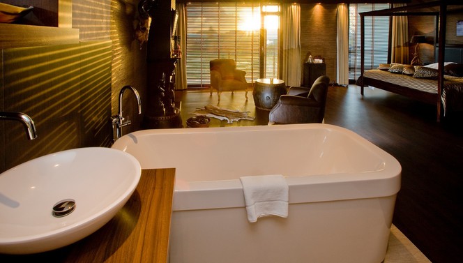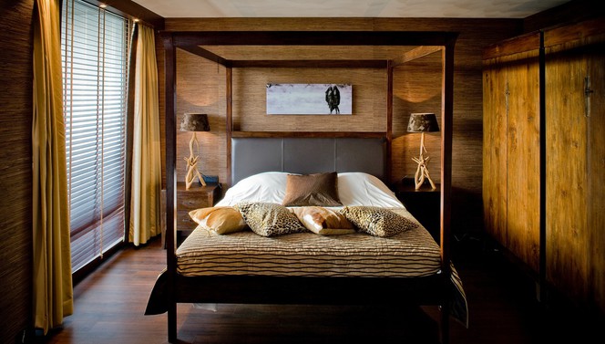Zimmerbeschreibung: Die South Suite führt Sie in wärmere Orte. Befinden Sie sich einmal in diesem einzigartigen Hotelzimmer, wähnen Sie sich in einer komplett anderen Welt. Diese Suite ist komplett im afrikanischen Stil eingerichtet. Eine Mischung aus warmen Farben und Materialien sorgen dafür, dass Sie die Hektik des Tages leicht und schnell hinter sich lassen. Natürlich bietet die South Suite, genauso wie die anderen Hotelzimmer des Hotel Sassenheim, eine ordentliche Portion Luxus und Komfort mit unter anderem einem King-Size-Bett, einem elektrischen Kamin und einer Minibar.