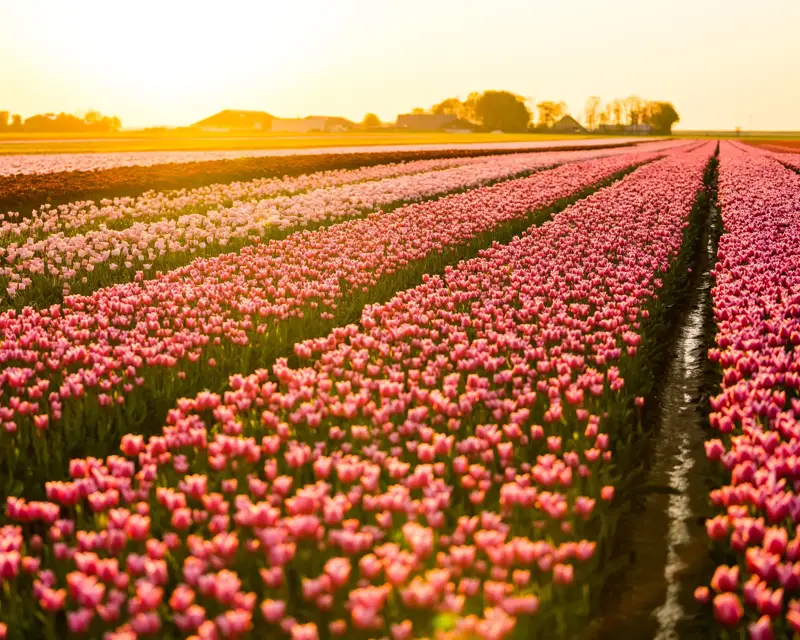 Entdecken Sie atemberaubende Meere bunter Blumen im Frühling, wenn die Blumenzwiebel-Felder mit Tulpen, Hyazinthen und Narzissen zum Leben erwachen. Machen Sie unterwegs Halt an einem der vielen Blumenstände, um einen Strauß frischer Tulpen direkt vom Feld zu kaufen.