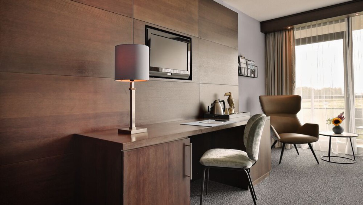 The spacious Comfort hotel rooms of Van der Valk Hotel Sassenheim-Leiden are stylishly furnished and offer ultimate comfort during your stay. The Comfort rooms, with an area of 35 m², are equipped with comfortable box-spring beds for a good night's sleep and are equipped with climate control.The royal armchair, Nespresso machine and flat-screen TV make your stay even more comfortable! The luxurious bathroom has a bath with seperate shower, hairdryer and various toiletries. All Comfort hotel rooms have a balcony.