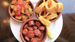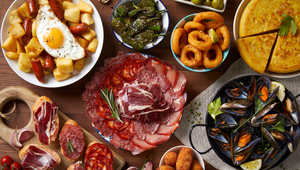 🧊 Koude tapas & pintxos: Begin de avond met een selectie kleurrijke tapas en pintxos, van klassieke jamón serrano met tomaat tot geitenkaas met honing en walnoot. Proef ook frisse gazpacho-shots, aardappelsalade ensaladilla rusa, tortilla española en een grand plateau de fruits de mer. Een assortiment vers brood met aioli en olijfolie maakt het geheel compleet.