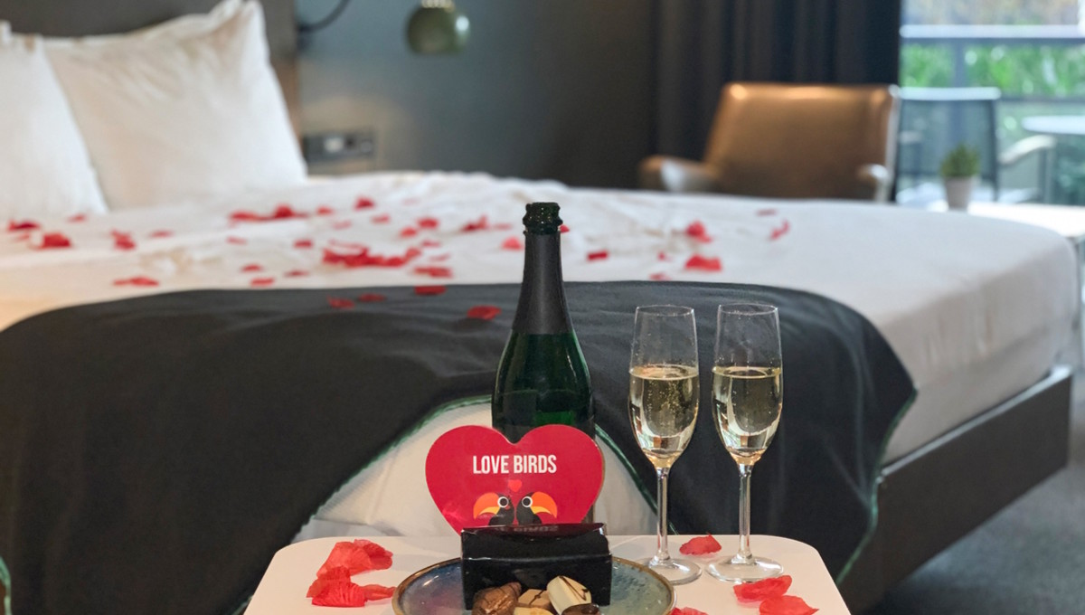 Avec le Forfait de romantique, vous pouvez compléter une nuit romantique! En plus d'une merveilleuse nuit dans l'une de nos chambres d'hôtel Comfort ou Deluxe et d'un buffet de petit-déjeuner copieux, vous pourrez profiter de quelques belles surprises amoureuses comme une bouteille de bulles festive, des chocolats de luxe et des pétales de rose sur le lit. Le forfait de romantique comprend également un délicieux dîner de 3 plats au restaurant Nest. Plongez-vous dans la romance et profitez d'un séjour amoureux ensemble dans notre hôtel confortable!