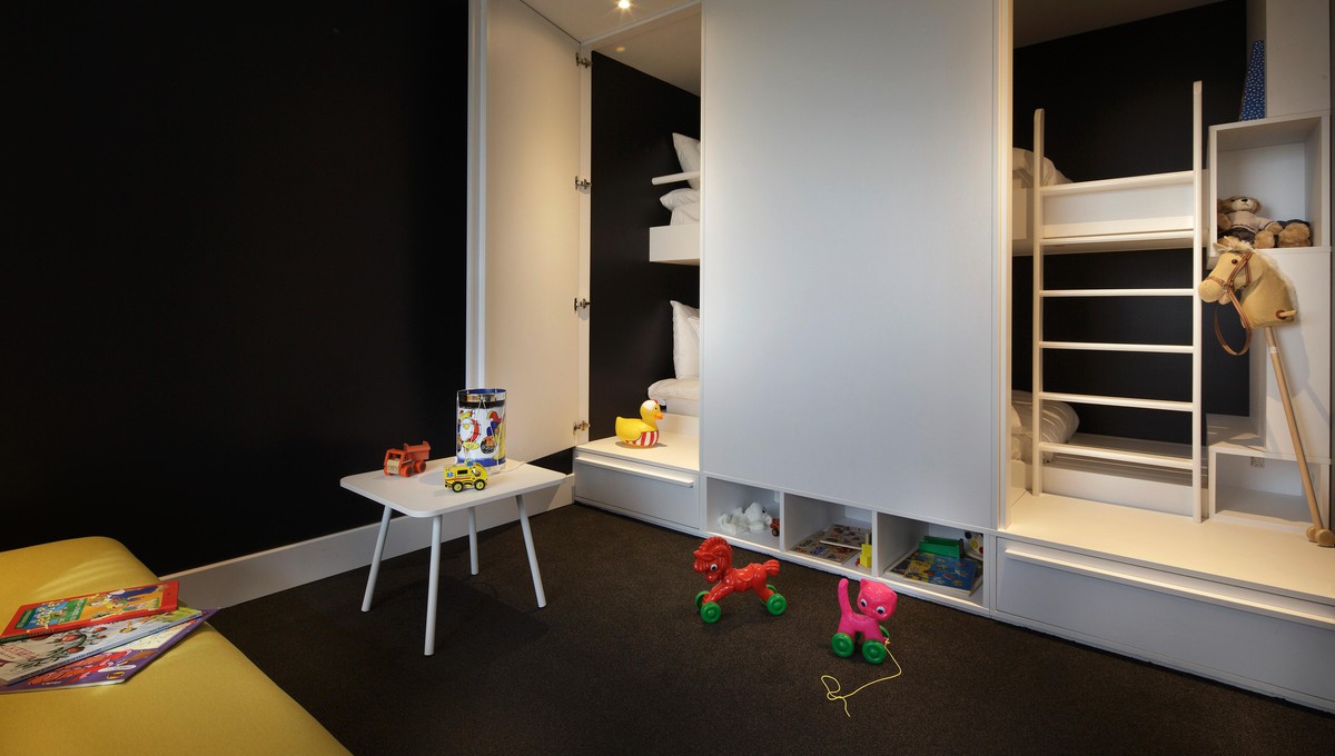 Notre chambre familiale spacieuse est un vrai régal pour les familles avec enfants ! La chambre comprend un lit king-size, un coin spécial pour les enfants avec un canapé-lit confortable et un fantastique lit superposé pour deux enfants (de 3 à 12 ans). Depuis le lit superposé, les deux enfants ont accès à leur propre télévision ! Vous préférez jouer ? Consultez le tiroir à jouets du lit superposé.