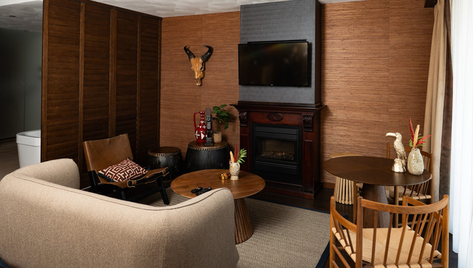 La Suite South vous fait voyager vers les pays chauds. Après avoir pénétré dans cette chambre d’hôtel exclusive, vous vous retrouverez dans un tout autre monde. Cette suite est entièrement décorée dans le style africain. Un mélange de couleurs et de matières vibrantes vous fera oublier votre journée trépidante très vite et très facilement. Il va sans dire que la Suite South vous offre, tout comme les autres chambres de l’Hotel Sassenheim, luxe et confort avec, entre autres, un lit king size, une cheminée (électrique) et un minibar.