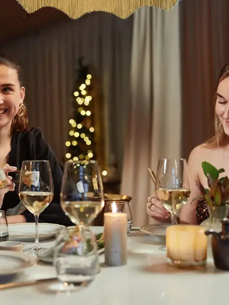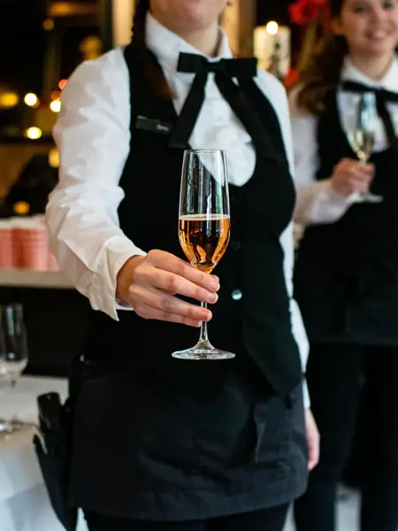Les prix comprennent le vin de la maison, la bière pression, les spiritueux nationaux, l'eau, les boissons non alcoolisées et le café/thé, avec une coupe de bulles festive à l'arrivée. Maximum 6 consommations alcoolisées par personne.