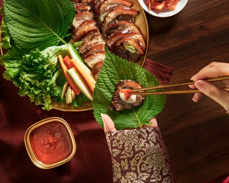 Live Cooking & buffet chaud : Composez votre wok avec nouilles, riz, viande, poisson ou tofu. Spécialités grillées comme yakitori, saumon yuzu et bulgogi. Buffet avec classiques tels que babi pangang, curry massaman et tempura.