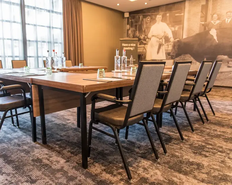 63m². Plusieurs configurations possibles, convenable pour 45 personnes maximum. Ecran de projection intégré, beamer (à réserver à part) et wifi gratuit. Evidemment cette salle reçoit la lumière du jour.